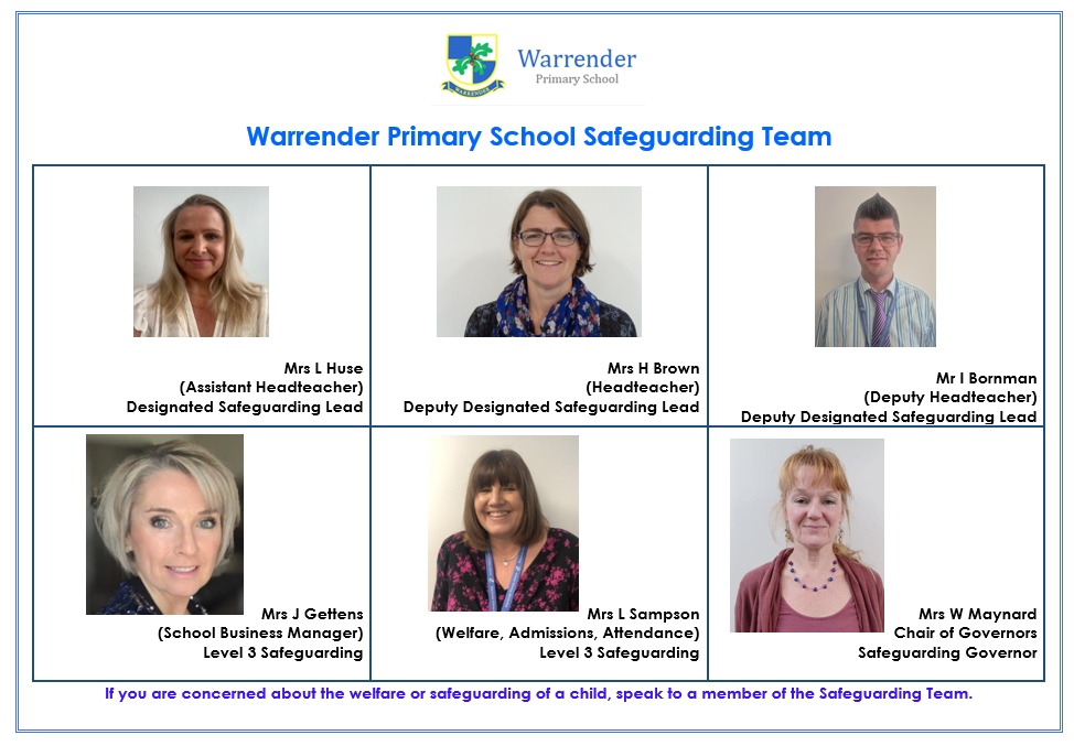 If you have any concerns about the safety of your child either inside school or outside of school please speak to Mrs Huse (Designated Safeguarding Lead) Or Mrs Brown and Mr Bornman (Deputy Designated Safeguarding Leads). Alternatively, you can email: dsl@warrenderschool.co.uk