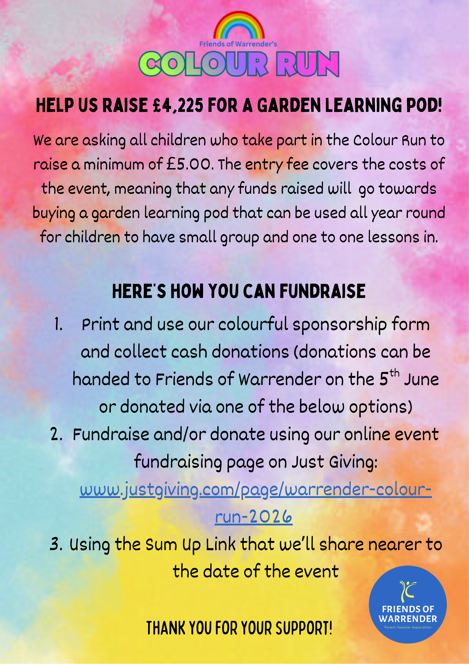 To access the colour run sponsorship and gift aid declaration form, please click here
